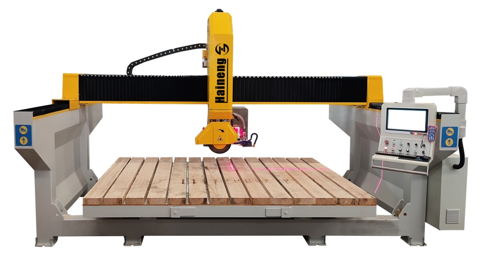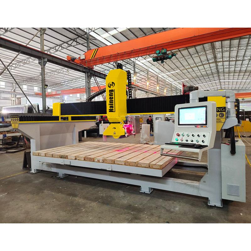 Die Haineng 4-Achs-CNC-Brückensägemaschine ist eine Steinbearbeitungsmaschine, die hochpräzises Schneiden und intelligente Bedienung vereint. Brückensteinschneidemaschine Die Steinsäge verfügt über eine 4-Achs-Anordnung mit zusätzlichen Fräsfunktionen und bietet eine komfortable Installation und einfache Bedienung. Sie wird hauptsächlich zur Bearbeitung von Steinmaterialien wie Marmor, Quarzstein, Steinplatten und Granit in dekorativen Projekten eingesetzt und ist die optimale Lösung für die Tiefenbearbeitung in Betrieben, die individuell zugeschnittene Formen herstellen.