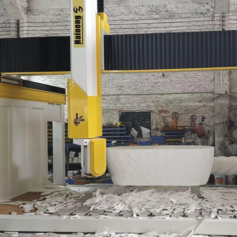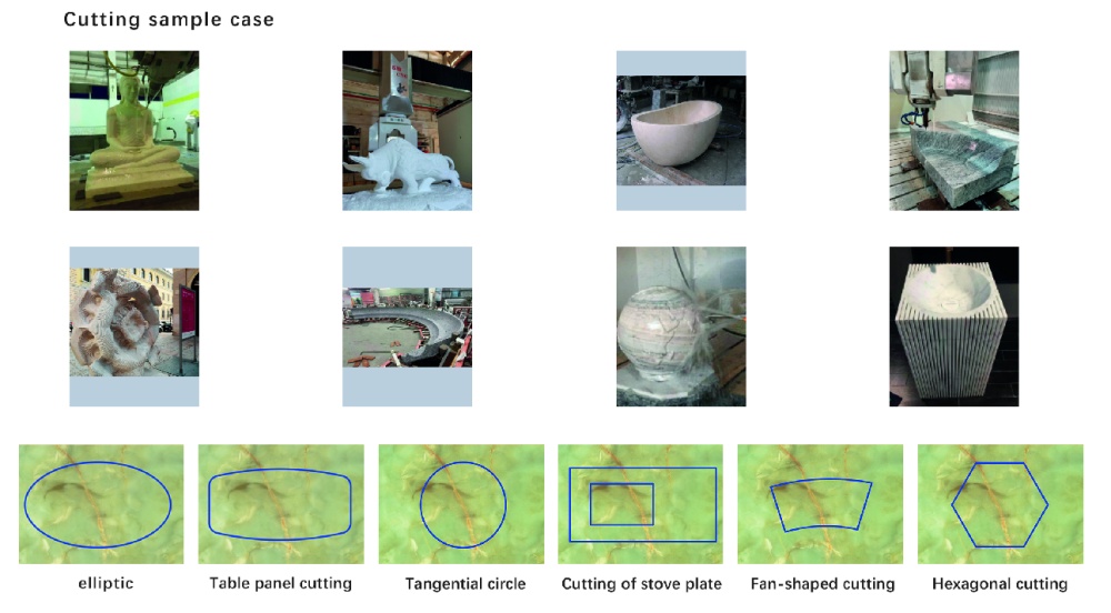 Das 6-Achsen-CNC-Bearbeitungszentrum ist mit der herkömmlichen Profilierungsfunktion für Plattenschneiden, Wasserlandschaften, Gartenformen, römischen Säulenköpfen hochwertiger Villen, Säulen mit frittierten Teigdrehungen und verschiedenen Arten der Steinverarbeitung mit komplexen Formen kompatibel.