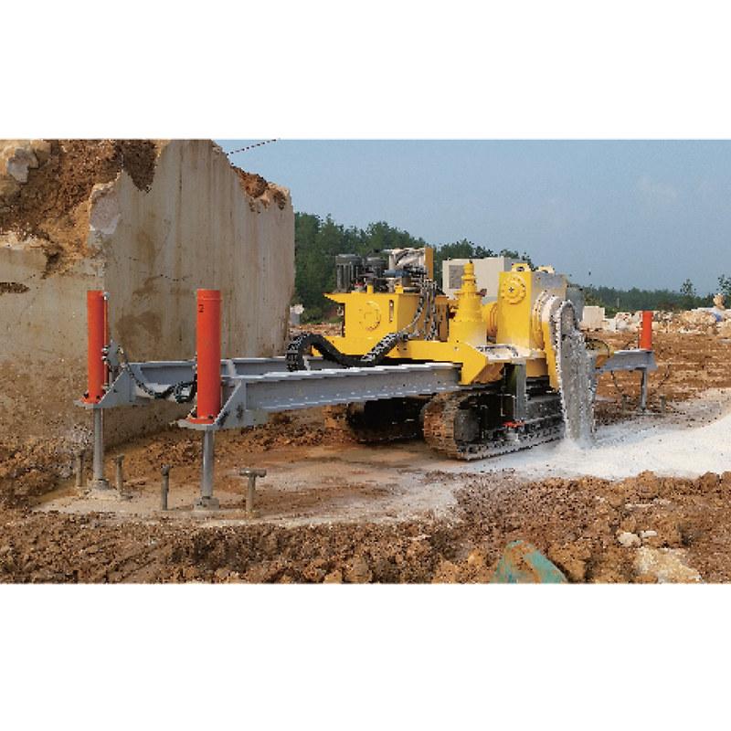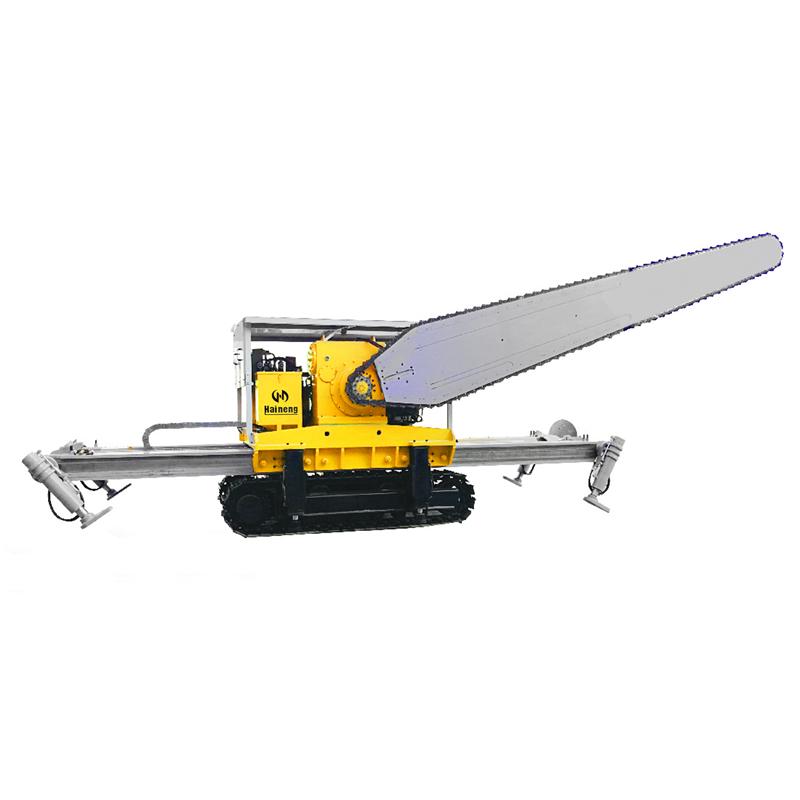 Kettensäge für Raupen ist eine Weiterentwicklung der Orbital-Kettensäge. Das herausragendste Merkmal der Maschine ist die Ausstattung mit einer selbstlaufenden Laufschiene, die sich bequem und flexibel bewegen lässt. Der Maschinenträger und die Laufschiene bewegen sich beim Arbeiten abwechselnd, sodass keine Zusammenarbeit mit anderen Laufschienen von Hebemaschinen erforderlich ist. Sie ist für den Außeneinsatz in Bergwerken geeignet.