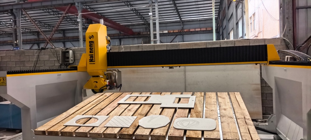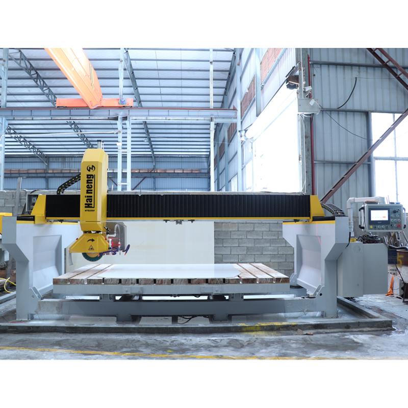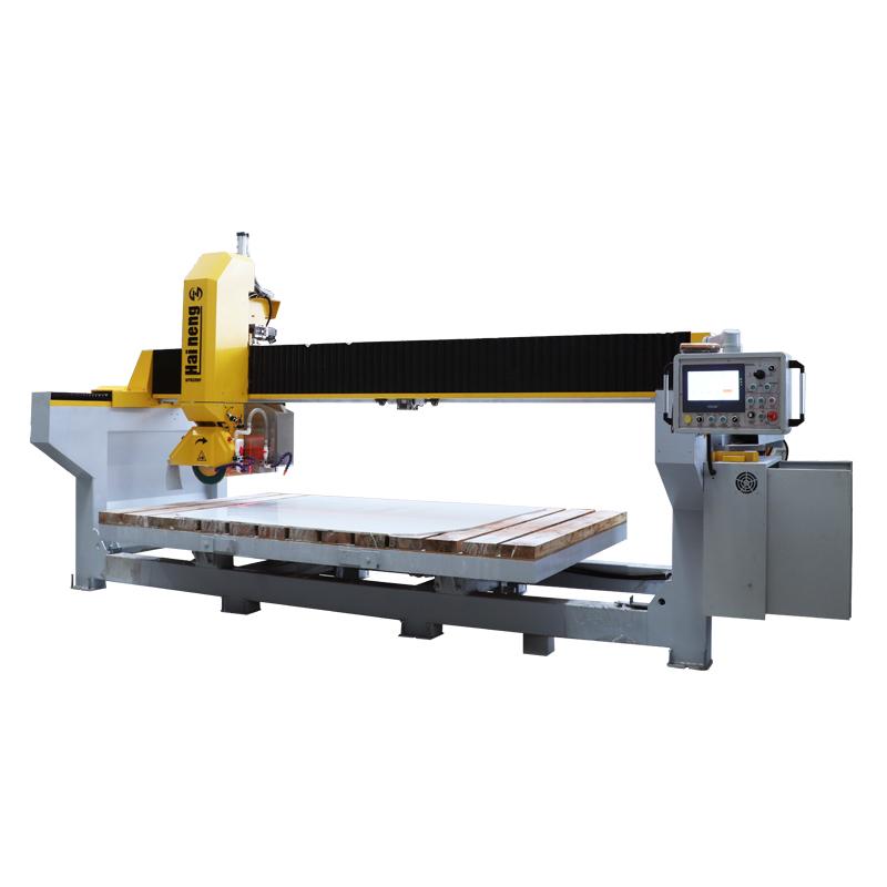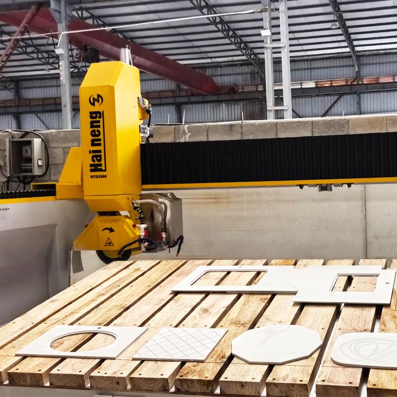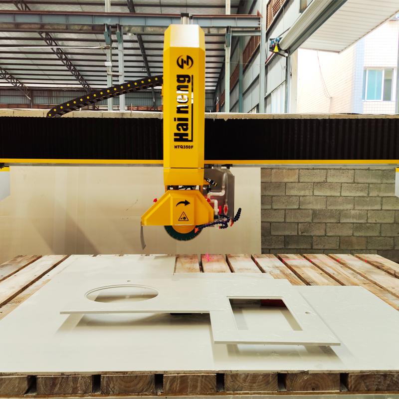 Die intelligente 4-Achs-Brückenschneidemaschine von Haineng, ausgestattet mit einem fortschrittlichen CNC-System, ermöglicht nicht nur das schnelle und präzise Schneiden von Standardplatten, sondern bewältigt auch komplexe Bearbeitungsprozesse mühelos. Ob Polygone, Trapeze, Rauten oder elegante Ellipsen – die Maschine erledigt diese Aufgaben vollautomatisch. CNC-Brückensäge Die einzigartige automatische Werkzeugneigungsfunktion von 45° ermöglicht ein makelloses vierseitiges Fasen in einem Arbeitsgang. Darüber hinaus lassen sich Oberflächengittermuster problemlos erzielen, wodurch vielfältige dekorative Anforderungen erfüllt werden.